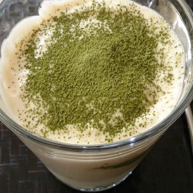 - Take out from fridge and dust the top with finely ground sencha and sugar.