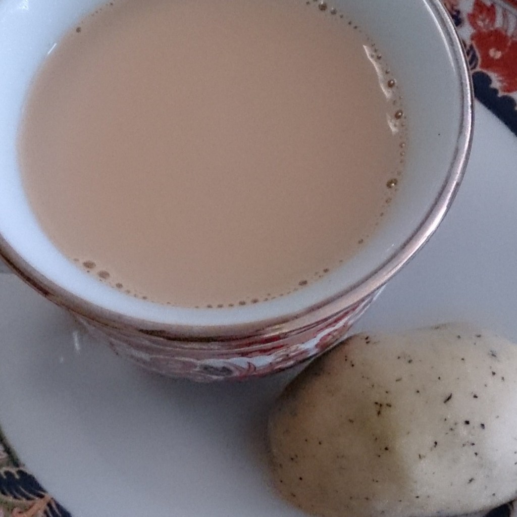 - Add formed milk; decorate a tea leaf in the centre.